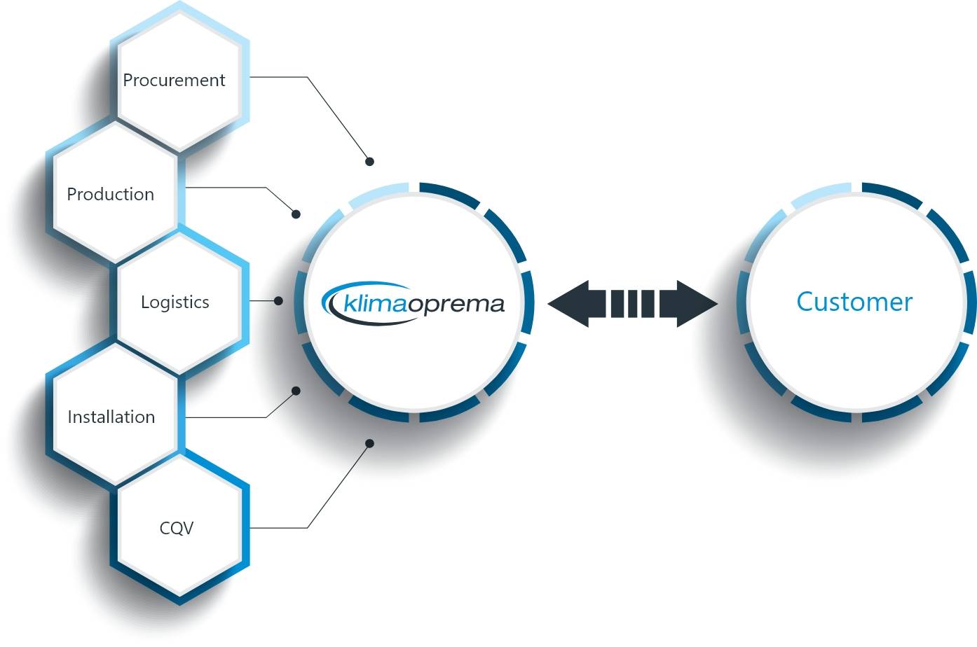 The Klimaoprema QMS is a process-oriented, integrated management system that reflects the requirements specified in ISO 9001 Quality Management Systems requirements.